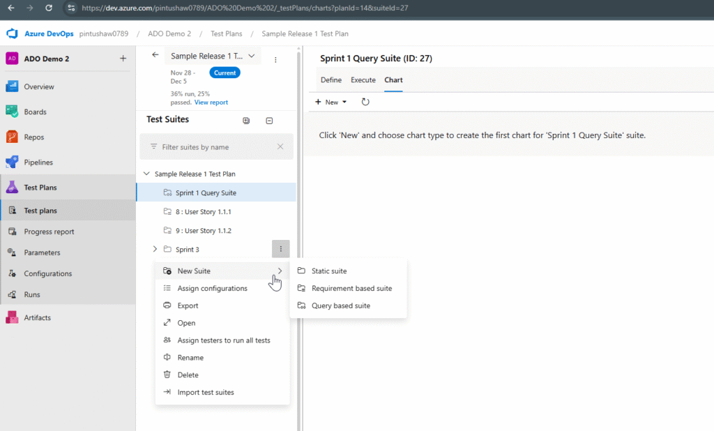 - Requirement-based Suite – automatically links to a User Story; pulls test cases tied to that story.