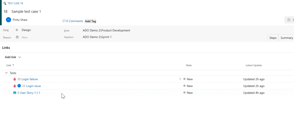 - When you create a suite for a User Story, all test cases under that suite are auto-linked.